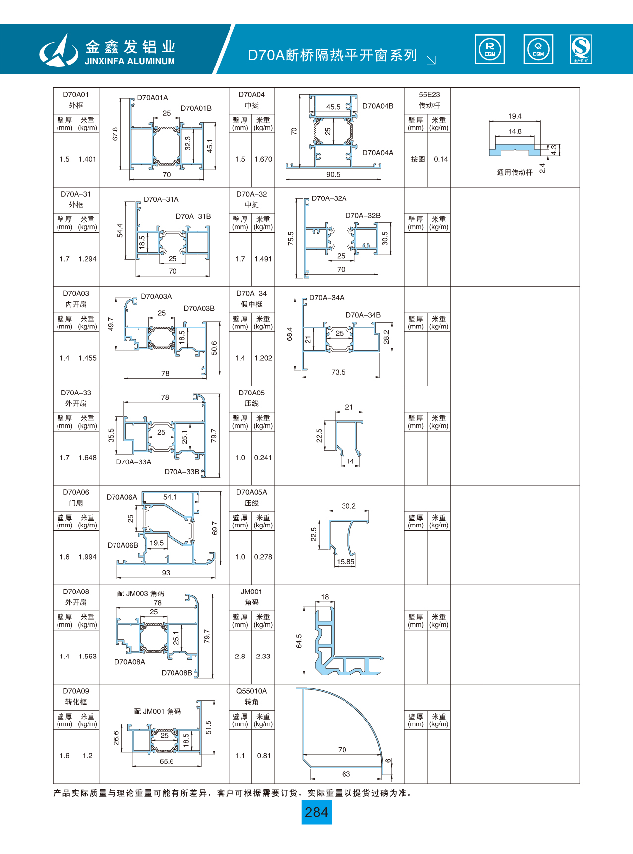 D70A断桥隔热平开窗系列